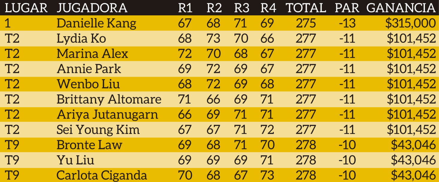 Kang inició su recorrido un golpe por debajo de liderato y, a pesar de un bogey en el hoyo 4, se recuperó con cuatro birdies en el regreso, para asegurar la victoria.